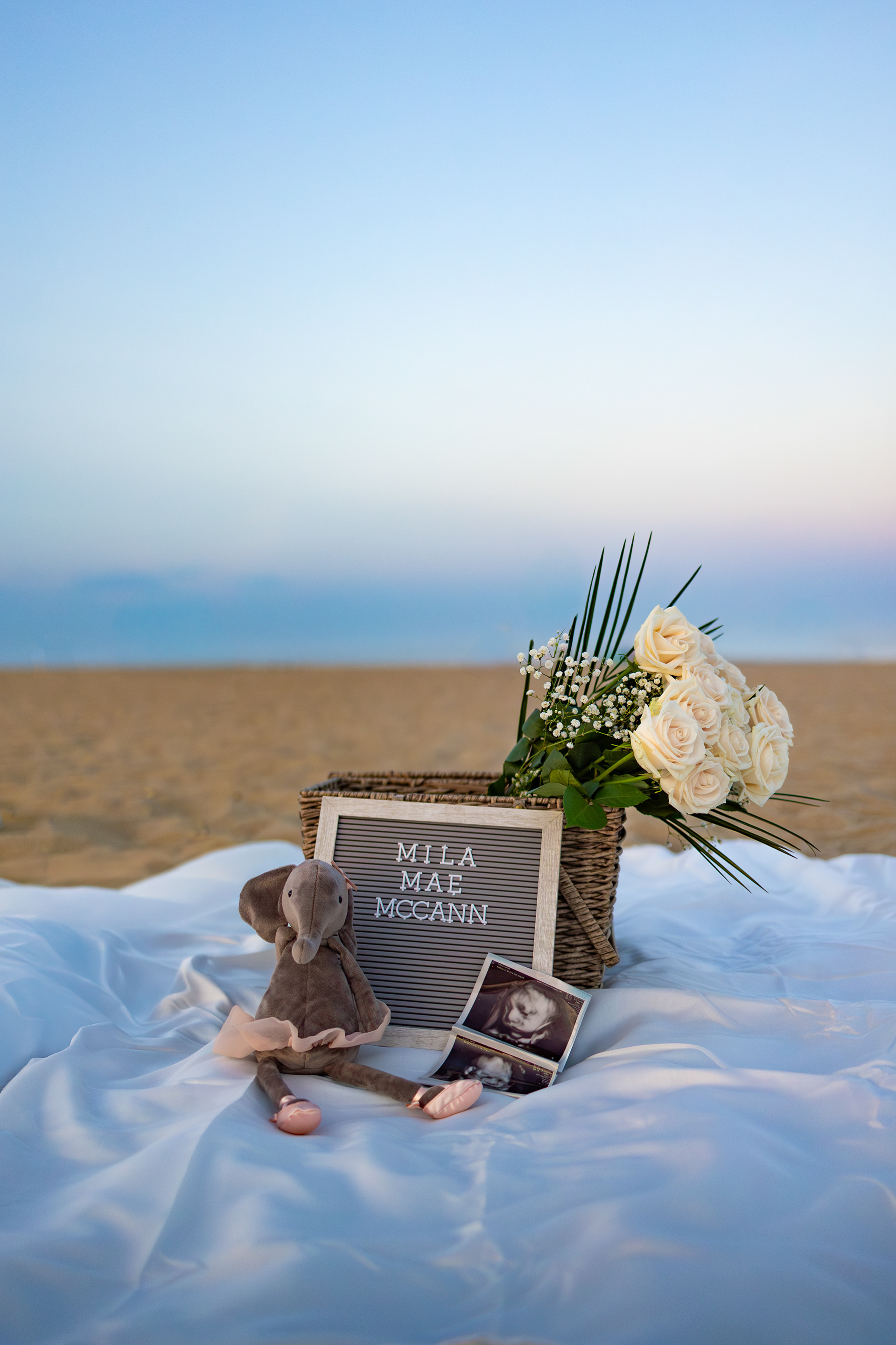 There was other people at the beach and the sheets we brought didn't extend long enough for what I had envisioned. that's where photoshop comes to the rescue! a simple removal of the people in the background and extending the sheets to cover the foreground is all it took get the shot!